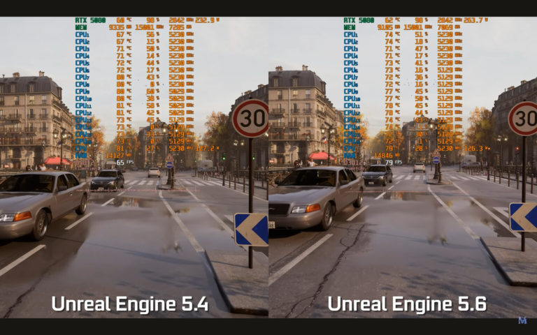 Ново видео от MxBenchmarkPC демонстрира значителните подобрения в Unreal Engine 5.6 чрез Paris Tech Demo на Scans Factory, пусната на RTX 5080. Сравнението с версия 5.4 с активиран...